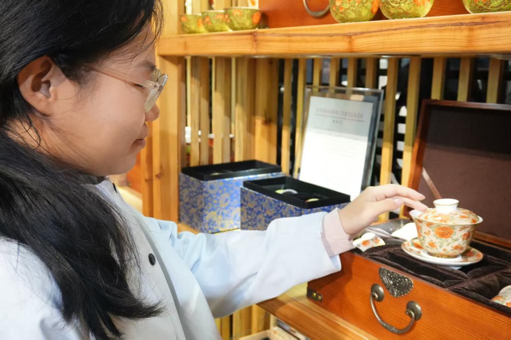 随后,师生先后参观红绿彩馆藏展品区与工艺作坊。在展品区,大家近距离观察不同时期红绿彩瓷器的器型、釉色与纹饰特点,了解其从宋代起源、明清发展至现代创新的历史脉络;在工艺作坊,非遗传承人现场演示了红绿彩制坯、施釉、绘画、烧制等关键工序,讲解传统技艺的技法要点与传承困境。师生们围绕 “红绿彩工艺的历史演变”“传统技艺与现代设计的融合” 等话题与工作人员深入交流,为后续研究积累一手资料。