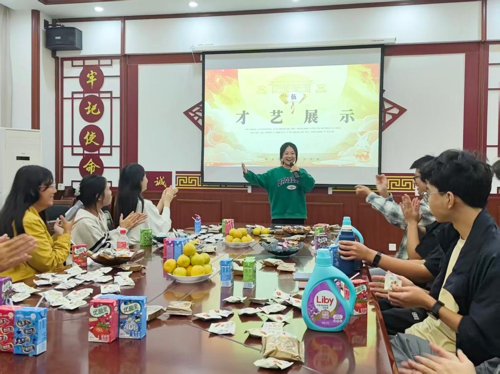 活动现场气氛热烈,内容丰富多彩。互动环节集知识性与趣味性于一体,同学们在问答环节积极抢答,展现出良好的文化素养;中外学子共品月饼、破解灯谜,在亲切交流中感受传统文化的魅力与团圆佳节的温馨。才艺展示接续上演,同学们各展所长,或歌声悠扬,或朗诵激昂,充分展现了青春风采,赢得阵阵掌声。留学生们踊跃参与其中,分享文化理解和节日感受,现场洋溢着跨文化交流的友好氛围。活动尾声,全体同学共同观影,于光影流转中体味团圆深意,感受家国情怀。