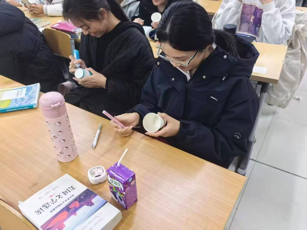 活动伊始,负责人分发空白纸杯与彩绘工具,引导学生以“情绪色彩学”为灵感,用不同色调、笔触勾勒当下心境,将压力、喜悦等感受转化为专属纸杯画作。互动环节有序开展,学生手持原创纸杯画作进行交流,结合作品阐述创作心境与背后故事,在沟通中深化情感联结。现场同步设置“心愿杯贴”环节,参与者在他人作品上张贴暖心便签,以文字传递理解与鼓励,承载心意的纸杯成为心灵沟通纽带,助力心理疗愈与同辈温暖在校园传递。