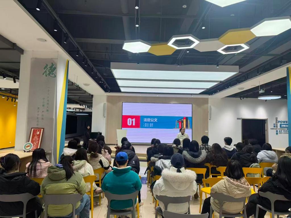 讲座中,刘娟老师结合文学与历史专业就业场景中公文写作的实际需求,从公文的种类、格式规范、写作技巧等基础内容入手,系统讲解了通知、报告、请示、函等常用公文的撰写要点。通过典型案例分析,老师指出了学生在公文写作中易出现的格式错误、语言表达不当等问题,并结合具体范文进行拆解,演示了规范的写作流程与方法。同时,针对职场中公文写作的实际应用场景,老师分享了提升公文写作效率与质量的实用技巧,强调了公文写作中“准确、简洁、规范”的核心原则。