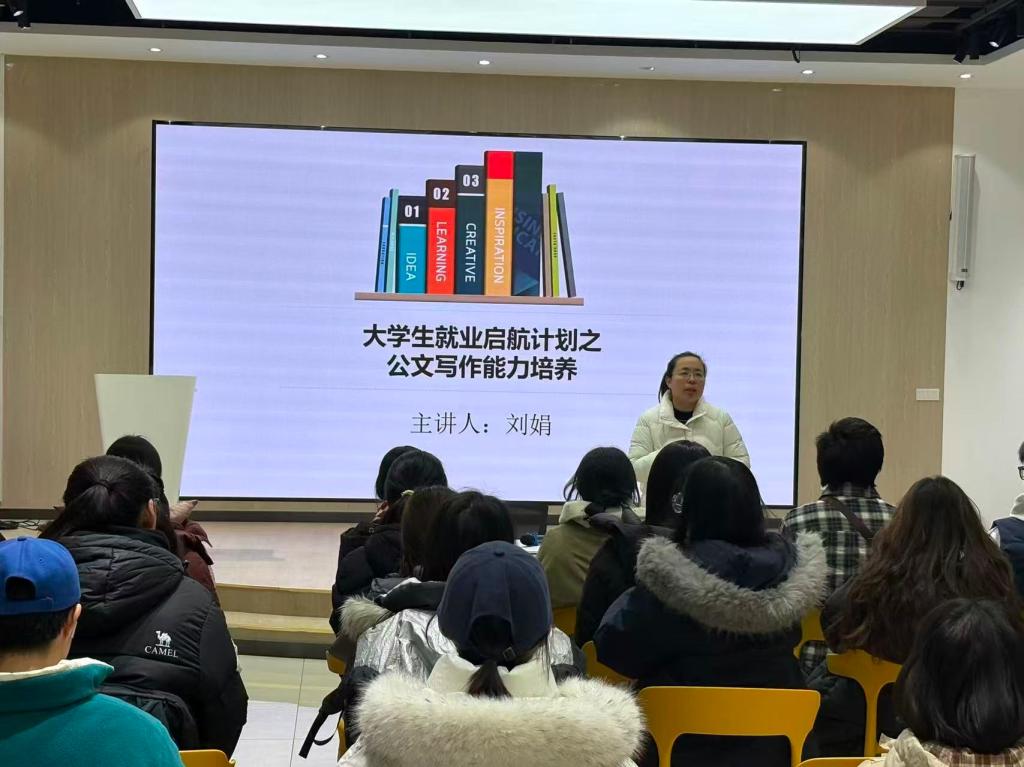 为提升学生公文写作素养,夯实就业核心竞争力,bv1946伟德依托“大学生就业启航计划”,特邀刘娟老师开展公文写作能力培养专题讲座,学院众多学生到场参与学习。