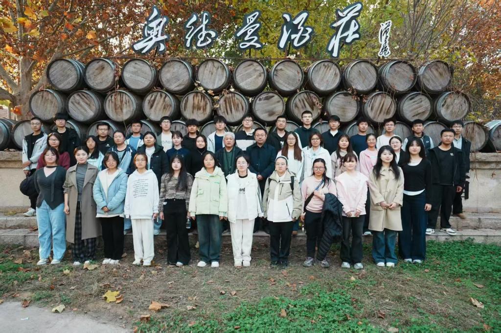 活动当天,老师明确介绍各参访点位的核心学习目标,同学们沿着 “地域文化 — 生态历史 — 民间传说 — 产业变迁” 的研学脉络展开探索。在杨家圈文创园,同学们通过老建筑改造的实景,感受以京杭大运河文化为根基的设计理念,深化了对运河文化德州段历史底蕴的认知;在九龙湾公园,大家沿河而行,了解德州近年来在水资源保护、生态修复方面采取的措施,真切感受到生态变迁对城市发展的影响;走进四女寺风景区,古建筑间流传的“四女孝亲”故事,让道德教诲变得亲切可感;踏入奥德曼酒庄,同学们在工作人员的讲解下了解到葡萄酒产业的发展历程,感受葡萄酒文化的独特魅力。同学们还参加了酒庄营地的团建游戏,分组参与“骑毛毛虫”“合力建塔”和拔河比赛,欢笑声中凝聚了团队协作的默契。
