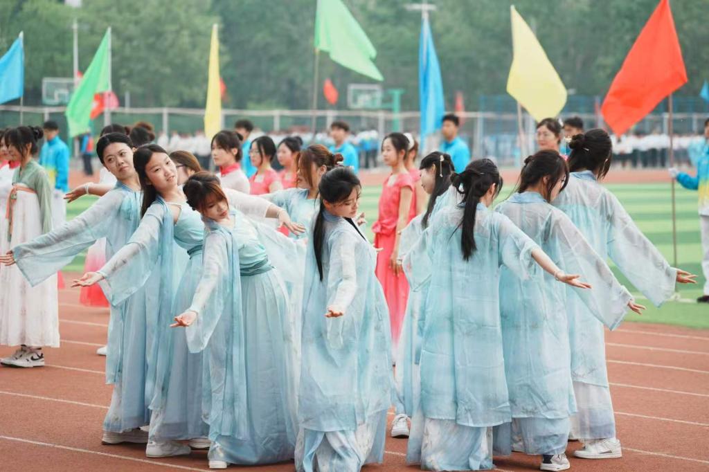 23日上午,学校运动会开幕式正式拉开帷幕,各方队依次入场,步伐铿锵、意气风发。我院方队身着雅致古装,步履从容、仪态端庄,入场时一段古典舞翩然而起,身姿舒展间尽显风雅,水袖轻扬中传递文心,将传统文化的温婉雅致与青春的蓬勃朝气完美融合,赢得现场阵阵掌声。方阵展示完毕,开幕式特色节目《春启德院 领航致远》精彩呈现。我院与教师教育学院、马克思主义学院的240名参演同学,手持油纸伞,以舞蹈与情景演绎相结合的形式,将《立春》的生机与《领航》的力量相融,油纸伞开合间流转春日意趣,传递出蓬勃向上的青春力量。特色节目展演过后,全校千人广播操方阵接续登场,整体动作整齐划一、气势庄重,充分彰显出德院学子良好的精神风貌。